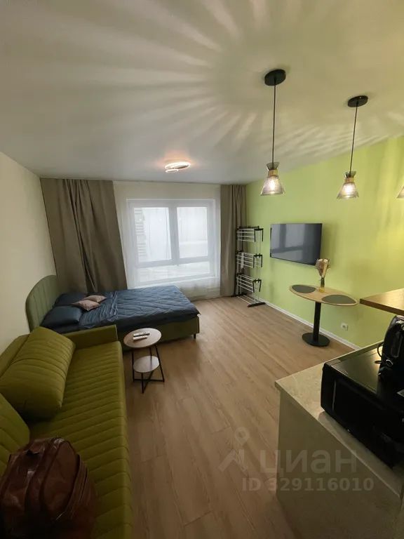 Видовая студия на 26 этаже, окна во двор и видно улицу, стадион локомотив. В квартире будет комфортно как одиноким деловым людям, командировочным, парам, так и семьям до 4-х человек.