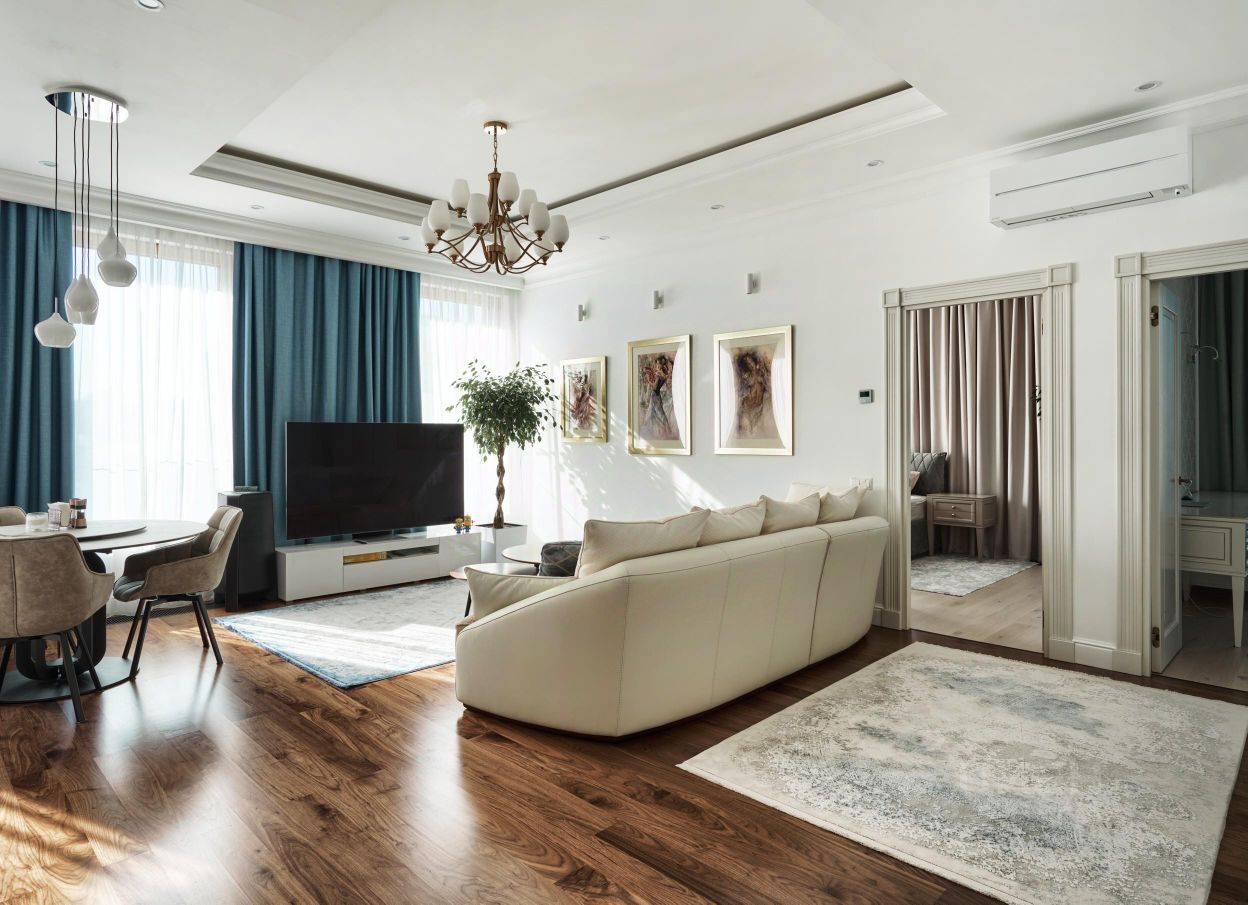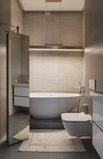 Апартаменты полностью укомплектованы мебелью и техникой премиального класса. Во всех комнатах установлены кондиционеры; теплые полы в санузлах и прихожей; приточно-вытяжная вентиляция с функцией очистки воздуха.
