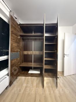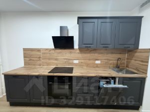 В квартире только что установлена кухня с посудомойкой, вытяжкой, плитой с 4мя конфорками, духовкой и большим количеством мест для хранения.