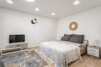 ? В спальне вас ждёт удобная двуспальная кровать с мягкими подушками и качественным бельём для полноценного отдыха.