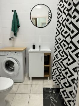 Площадь квартиры 41,6 кв.м., с отдельной спальней, кухней-гостиной,ванной. Бытовая техника, необходимая мебель. Оборудована: электрической варочной панелью и духовым шкафом, холодильником и стиральной машиной. Есть тв.