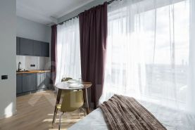 В квартире сделан дизайнерский ремонт, который создает атмосферу комфорта и уюта. Полностью оборудованная кухня с мебелью и современной техникой: холодильником, телевизором и стиральной машиной. Ванная комната оснащена душевой кабиной, что делает утренние сборы быстрыми и удобными.