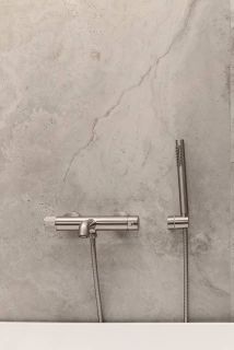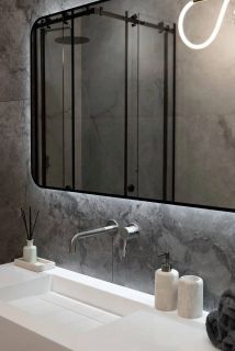 В ванной комнате все удобно и эргономично. Душевая система и отдельно стоящая ванна удобно вписались в пространство.