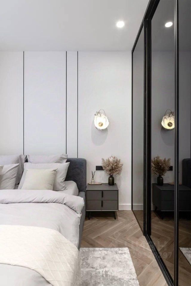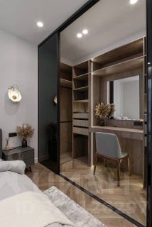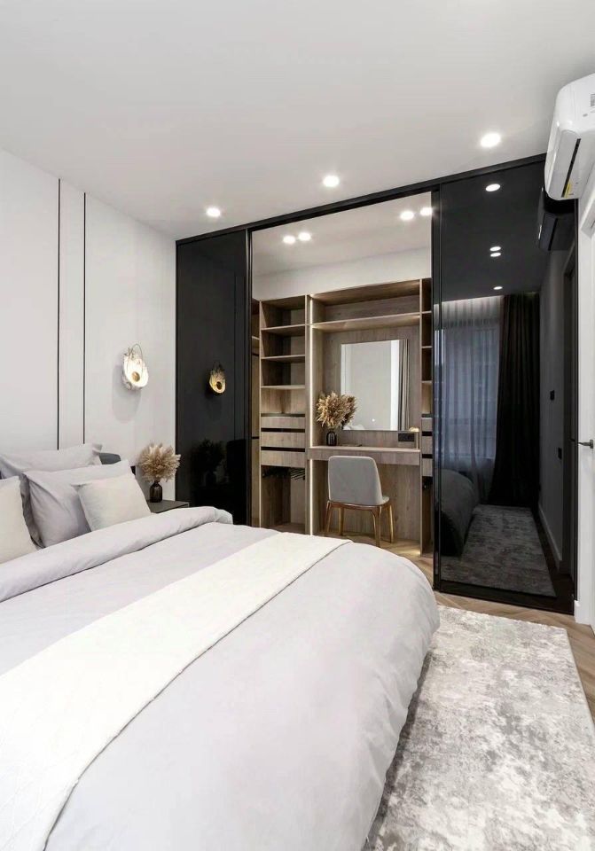 В спальне 2х спальная кровать, гардероб с удобно организованной зоной для хоум-офиса.