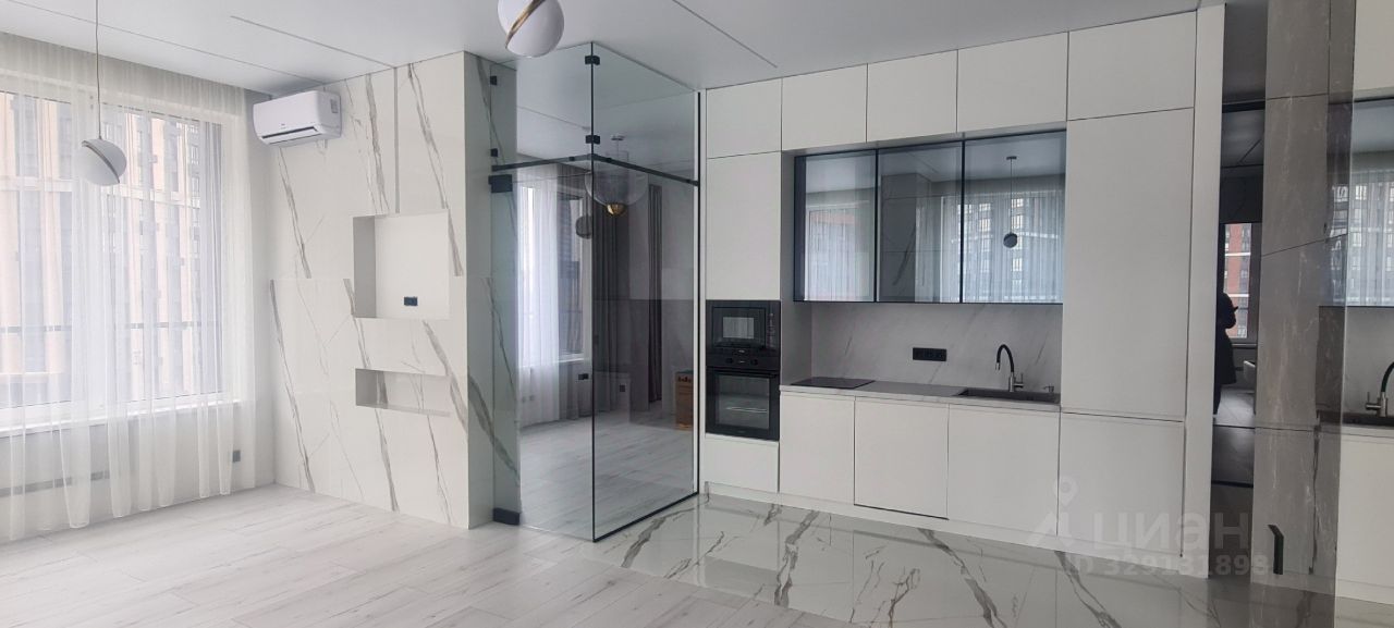 Светлая, комфортная, современная квартира с дизайнерским ремонтом, панорамными окнами, с видом во внутренний двор. В ремонте использован итальянский керамогранит, качественные отделочные материалы, трековые светильники с различными вариациями освещения, имеется вся техника и встроенная мебель.