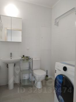 Совмещенный санузел 1: ванная, раковина, унитаз, стиральная машинка с загрузкой 9 кг., стеклянная этажерка, зеркальный шкаф, настенная сушилка для белья.