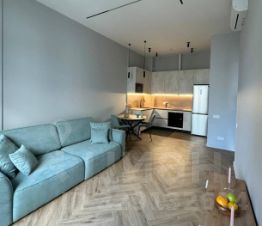 В квартире качественный ремонт сделанный с использованием новейших материалов, что создает уютную и современную атмосферу. В комнатах и на кухне установлена необходимая мебель. Для вашего комфорта квартира оснащена всей необходимой техникой: кондиционер, холодильник, посудомоечная, стиральная и сушильная машины. Ванная комната оборудована душевой кабиной. Совмещенный санузел выполнен в современном стиле.