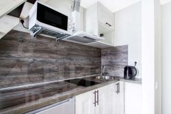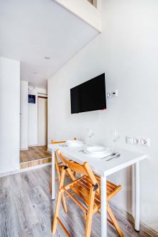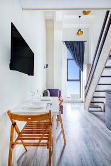 Во всех апартаментах панорамное остекление, свободные планировки и высокие потолки, а для жителей восьмого этажа индивидуальные террасы на крыше создают ощущение легкости и воздушности пространства. В каждой квартире есть все, что нужно для комфортного проживания: спальные места, постельное белье и полотенца, посуда, микроволновка, телевизор, Wi-Fi, холодильник, электрический чайник.