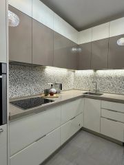 Кухня гостиная с остекленной лоджией , кухонный гарнитур Стильные кухни, большой обеденный стол, диван .