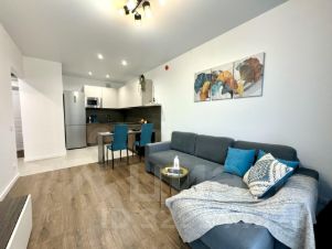 Квартира укомплектована всей необходимой техникой и мебелью. Есть холодильник, стиральная и посудомоечная машины, плита, духовой шкаф, утюг, микроволновая печь, гладильная доска , сушка, постельное белье . Полы ламинат и плитка.