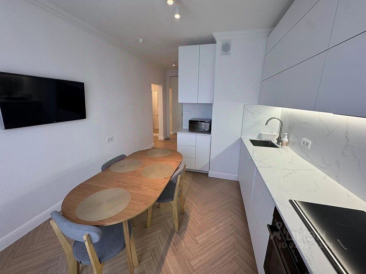 Квартира оформлена с дизайнерским ремонтом, что создает стильную и комфортную атмосферу.