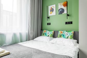 В апартаменте есть все необходимое для комфортного проживания: кондиционер, холодильник, телевизор (смарт) и стиральная машина, бойлер, утюг, фен, сушилка для белья, зонт, комплект постельного белья. Позволяет сразу же заселиться без дополнительных хлопот. Санузел совмещенный, оснащен душевой кабиной.