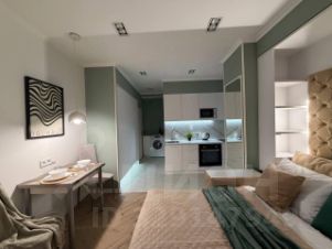 Апартаменты встретят Вас полностью оборудованной и укомплектованной всем необходимым: плита, холодильник, микроволновая печь, электрочайник, фен, утюг, посуда, качественное постельное белье, бесплатный WI-FI!