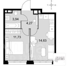 Евродвушка 35 Кв м, БЕЗ МЕБЕЛИ, БЕЗ КУХНИ, с ванной, сдаю на долгосрок. Изолированная спальня, кухня-гостиная.