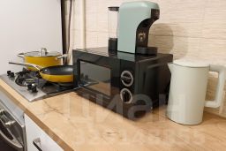 Готовьте с удовольствием: Вас ждет полноценная кухня со всей необходимой техникой: газовая плита, духовка, микроволновка, холодильник, чайник, кофеварка.