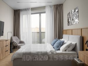 - спальная зона двуспальной кроватью с размером 160/200 и с подъемным механизмом (доп. хранения), прикроватная тумба и шкаф.