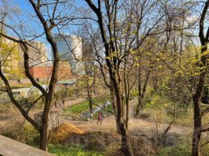 Особенности: Один из балконов находится в нескольких метрах от территории сада. Рядом возводится крупнейший в Европе многофункциональный спортивно-развлекательный центр.
