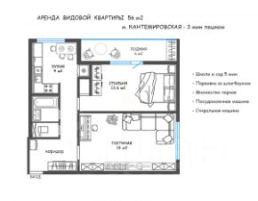 АРЕНДА СОЛНЕЧНОЙ ВИДОВОЙ КВАРТИРЫ 53 м2