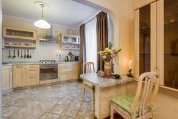 Сама квартира оборудована все современной мебелью и бытовой техникой. В вашем распоряжении будет посудомоечная и стиральная машина с функцией сушки, духовой шкаф, микроволновка и современная капсульная кофе-машина.