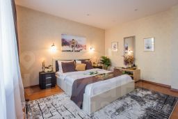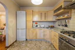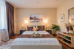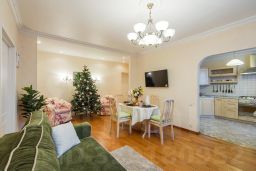 Сама квартира оборудована все современной мебелью и бытовой техникой. В вашем распоряжении будет посудомоечная и стиральная машина с функцией сушки, духовой шкаф, микроволновка и современная капсульная кофе-машина. Просторная гостиная позволит вам приятно провести время в кругу семьи или друзей, а комфортные спальни с мебелью из сибирского кедра подарят вам здоровый сон!