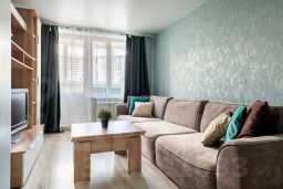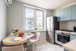 В квартире предусмотрено 4 спальных места, есть вся необходимая мебель и техника для комфортного проживания гостей.