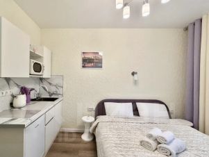 Квартира-студия подходит для проживания 1-2 гостей.