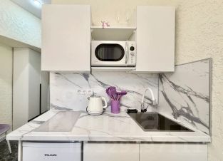 Оборудованная мини-кухня (холодильник, варочная панель, микроволновая печь, электрический чайник).