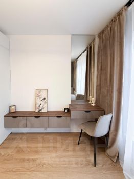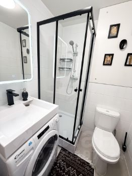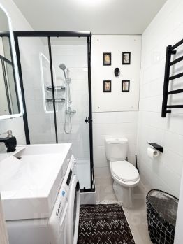 В квартире установлены два больших шкафа для хранения вещей. Совмещенный санузел оборудован душевой кабиной и стирально-сушильной машиной и электрическим полотенцесушителем.