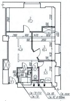 Две спальни (либо спальня+кабинет) и гостиная. Зона кухни , раздельный санузел.