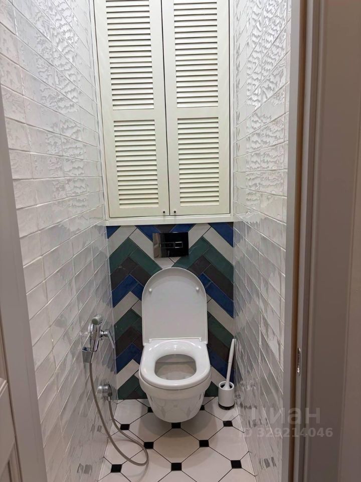 В туалете гигиенический душ, хозяйственный шкаф. Теплый пол.