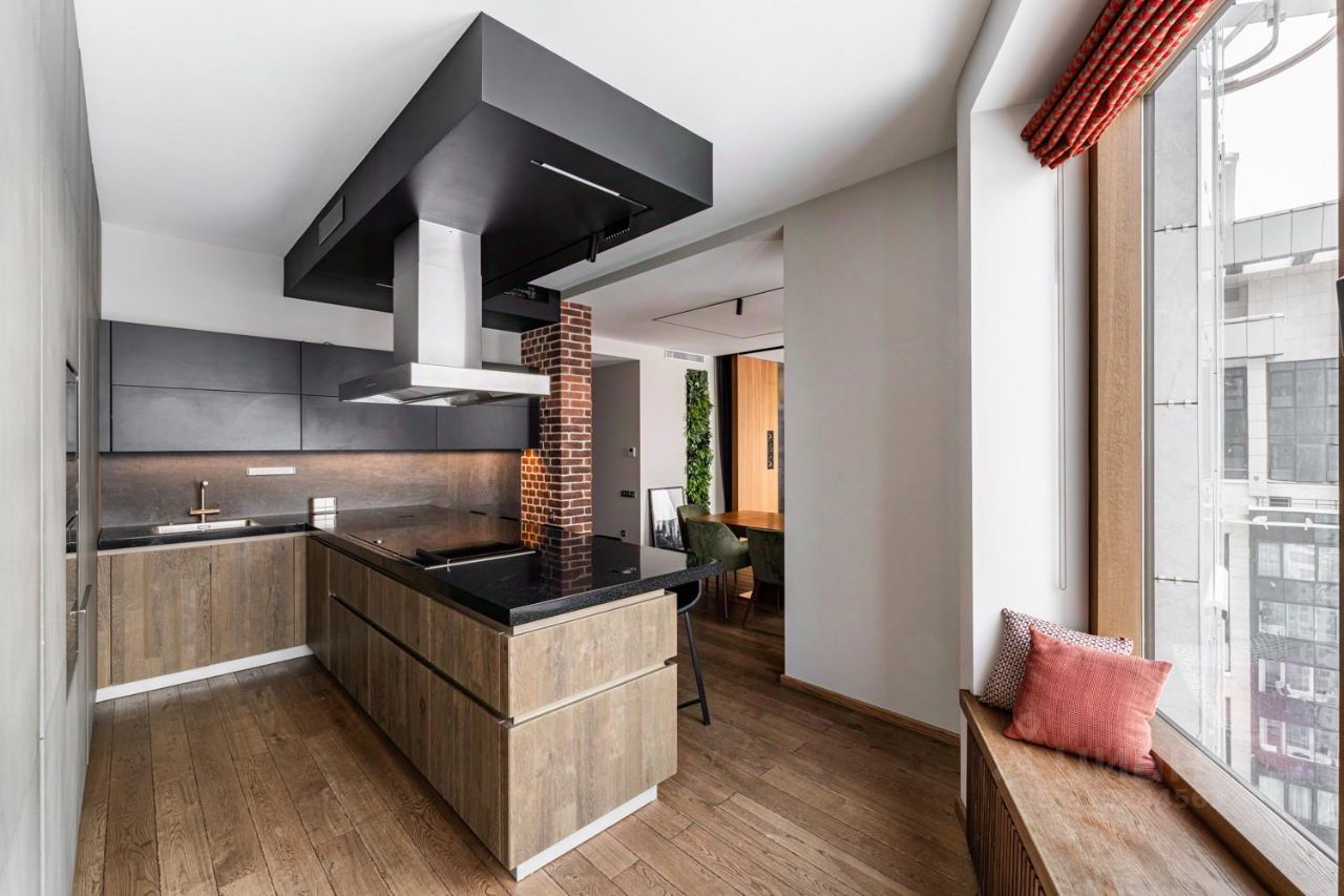 Удобная планировка: просторная гостиная с эко-камином, кухня с обеденной зоной, мастер спальня со своим с/у и гардеробной комнатой, детская комната, кабинет(комната свободного назначения), гостевой с/у, две дополнительные гардеробные, постирочная комната. Квартира меблирована итальянской мебелью и укомплектована бытовой техникой от ведущих европейских производителей. Премиальная немецкая кухня Leicht, стиральная и сушильная машины Asko, холодильник Liebherr, винный шкаф, индукционная варочная поверхность, аэрогриль, измельчитель пищевых отходов.