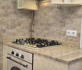 В кухне есть всё необходимое: холодильник, посудомоечная машина,газовая плита,а тауже мелкая бытовая техника и мебель.