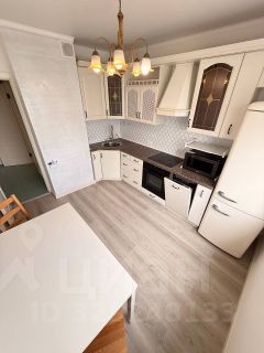 Кухня: установлен кухонный гарнитур, варочная панель, духовой шкаф. Посудомоечная машина. Холодильник. Обеденный стол.