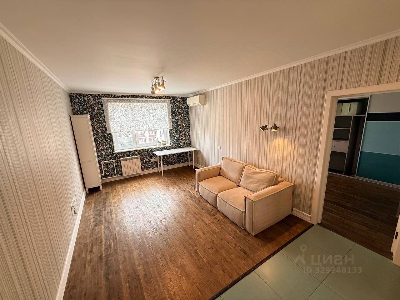 Гостиная: раскладной диван, рабочий стол, кондиционер.