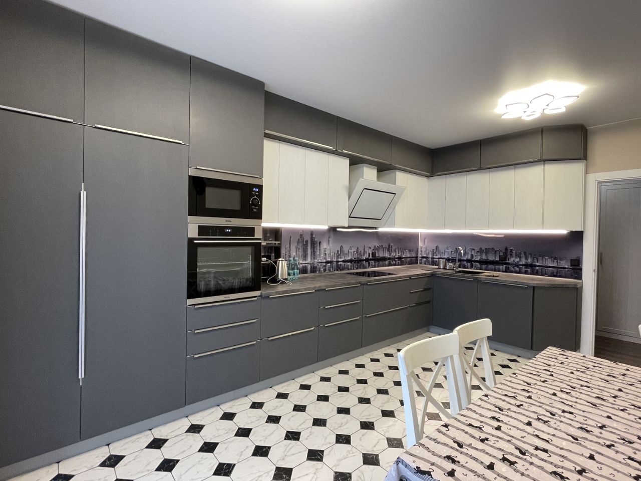 Планировочное решение квартиры выполнено в европейском формате в виде просторной кухни, которая является центром притяжения в доме, откуда выход на балкон с распашными дверьми. Полный комплект техники. На кухне предусмотрена дополнительная декоративная подсветка, создающая особую атмосферу по вечерам.