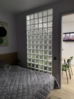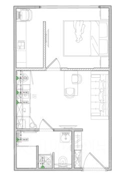 Апартаменты общей площадью - 30 кв.м. разделены на полноценную комнату с просторной гардеробной и кухню-гостиную. Санузел - 4 кв.м.