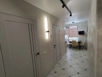 - Прихожая: зеркало с подсветкой, стильная вешалка, трекинговое освещение, видеодомофон с записью.