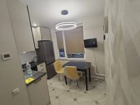 - Кухня: гарнитур из ЛДСП Egger, вся техника Weissgauff (духовой шкаф, варочная панель, посудомоечная машина, вытяжка, микроволновая печь, чайник), новый холодильник Gorenje, смарт-телевизор, раздвижной стол и 3 стула.
