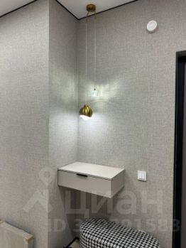 27м². Встроенный гардероб с зоной хранения, кровать эстетика с ортопедическим матрасом 2*2м., тумбы, туалетный столик с зеркалом с подсветкой, комод для хранения вещей, торшер.