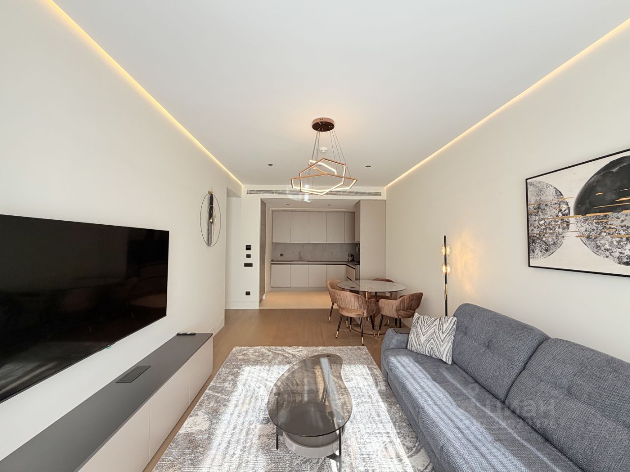 Телевизор есть в каждой комнате, на кухне есть вся встроенная техника по всей квартире встроенная система кондиционирования)