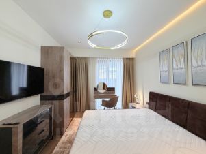 Планировка: видовая гостиная- кухня- столовая, спальня кровать с подъемным механизмом 180 на 200, спальня-кабинет диван раскладывается, совмещенный санузел с ванной и душем при спальне, совмещенный санузел с душем, в квартире много места для хранения вещей в виде шкафов по всей квартире.