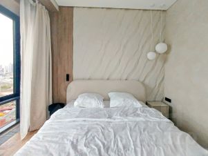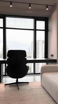 * Комнаты: спальня с двумя панорамными окнами для максимального комфорта, а также отдельный кабинет, который можно использовать как вторую спальню, имеется гардеробная и продуманное хранение.