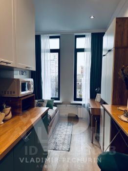Студия выполнена в современном стиле с большими панорамными окнами