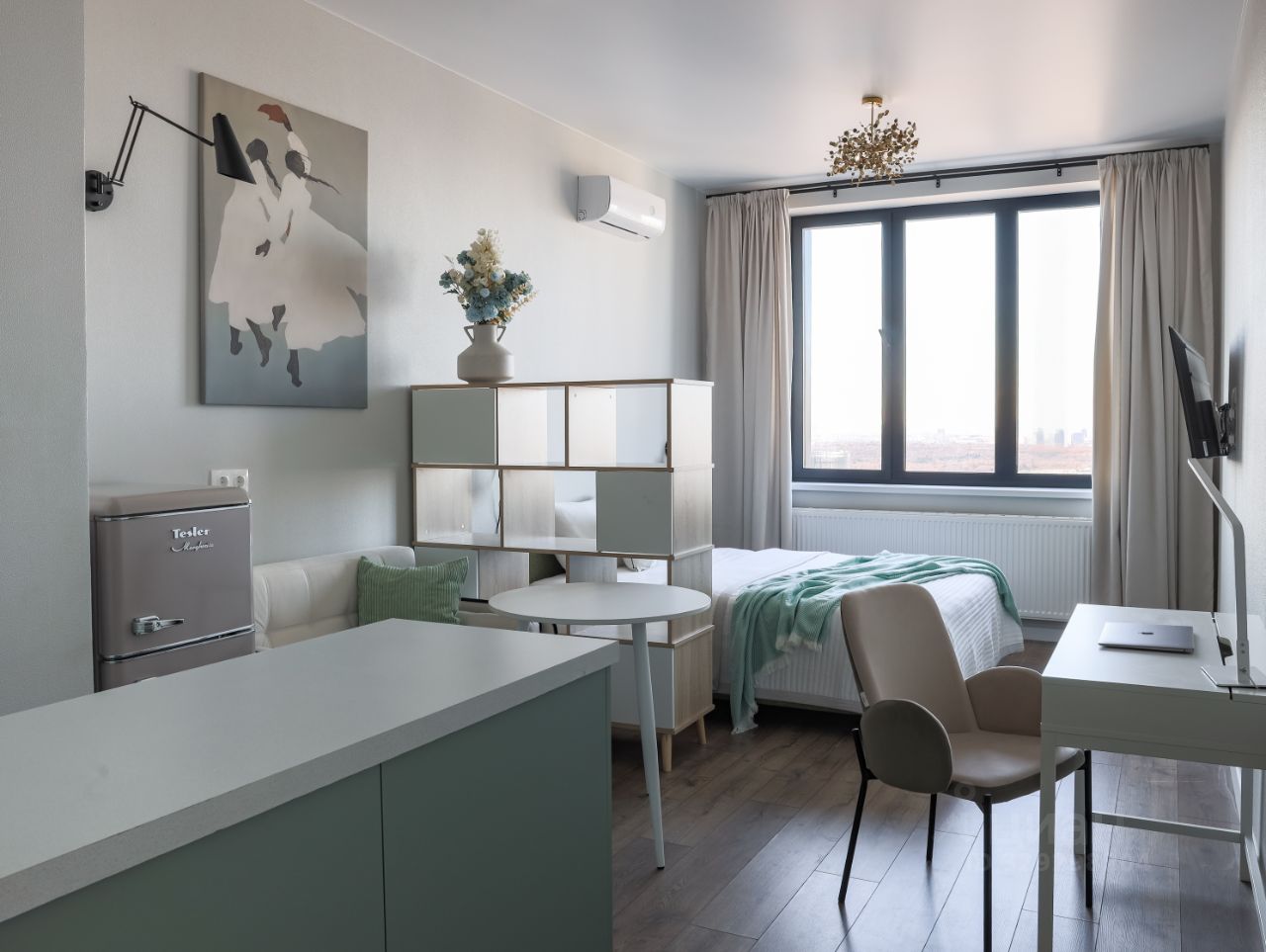 - Вблизи расположены: ТЦ Botanica, ТЦ METRO, Деловой центр Парк Хуамин, ТРЦ Europolis, Капустинский сквер, супермаркеты, аптеки, рестораны, фастфуд — все необходимое под рукой!