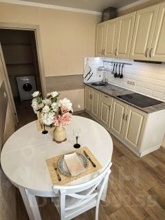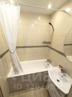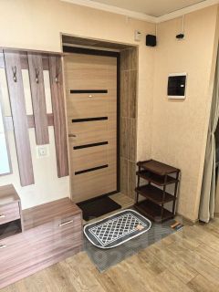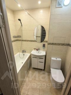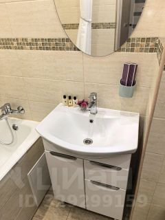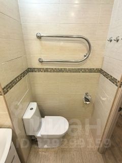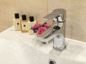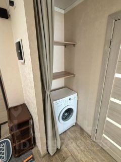 Просторный санузел в плитке до потолка, везде новые смесители. Стиральная машина Bosch спрятана в прихожей. Еще одно преимущество этой однушки, это наличие гардеробной комнаты.