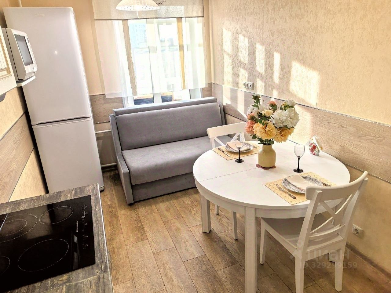 Кухня продумана до мелочей: раздвижной стол IKEA, новый диван-кровать раскладывается в полноценное спальное место, чайник JVC с поддержанием нужной температуры (для правильного чая и кофе) и тостер Morphy Richards. СВЧ, вытяжка, подсветка рабочей зоны