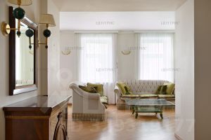 Отделка выполнена в благородном стиле современной классики с применением эксклюзивных материалов. В гостиной царит атмосфера утонченной роскоши, дополненная современной, полностью оборудованной кухней.