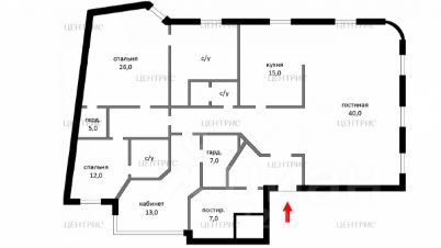 Продуманная до мелочей планировка являет собой гармоничное сочетание комфорта и функциональности: просторная гостиная, плавно перетекающая в кухню-столовую, приватная спальня с собственной ванной комнатой и вместительной гардеробной, вторая уютная спальня с ванной, элегантный кабинет, гостевой санузел, практичная прачечная и еще одна гардеробная комната.
