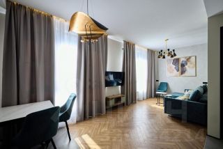 Изолированная спальная с телевизором LG и большим пространством для хранения домашних вещей под 2х спальной кроватью с ортопедическим матрацем и окнами с электроприводом ; просторная кухня гостиная 25 кв.м. ; теплые полы в санузле холле и кухне ; фильтр очистки водопроводной воды с опцией минирализация что позволяет полностью отказаться от покупки бутилированной воды ; скрытая встроенная в потолок система мультизональных блоков VRFкондиционирования от LG с щелевыми диффузорами ; оптоволоконный интернет ; видеодомофон BAS IP британия с коммутацией на все уличные входы во двор ; скрытый накопительный бойлер на 50 л ; опция тропический дождь в душевой ; удобный просторный (0,9м х 1,1м) душевой поддон с низким 50 мм порогом ; в сан узле все смесители и сан тех приборы немецкие трековое освещение щелевого монтажа в потолках гостиной и холла , карнизы для штор скрытого монтажа в потолок с подсветкой.