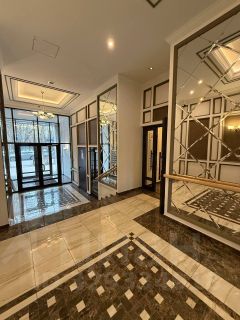 Панорамные окна в пол и высокие потолки обеспечивают невероятное количество естественного света и потрясающий вид на город.